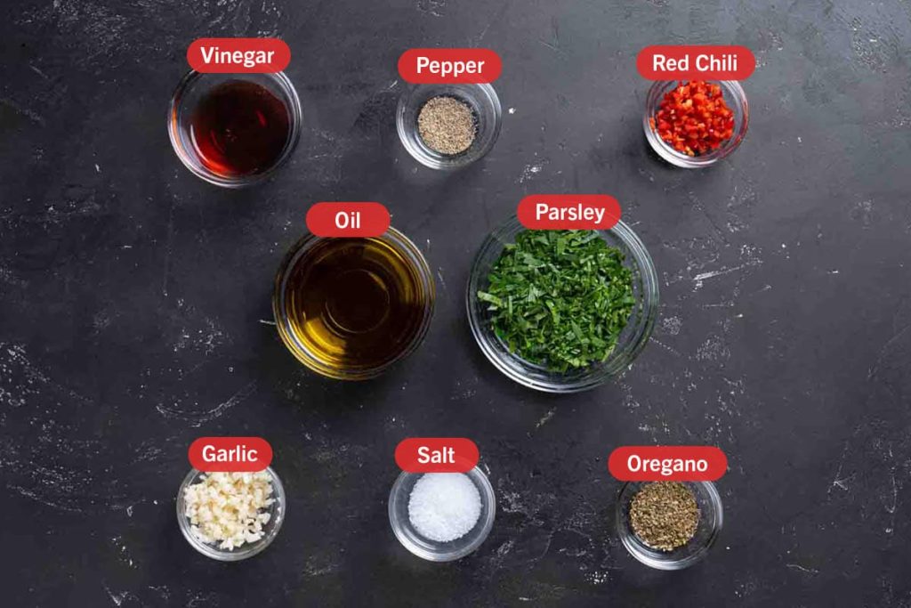 Fresh, flat-leaf parsley gives chimichurri its signature bright green color and herbal freshness. Avoid using curly parsley, as it has a milder flavor.
