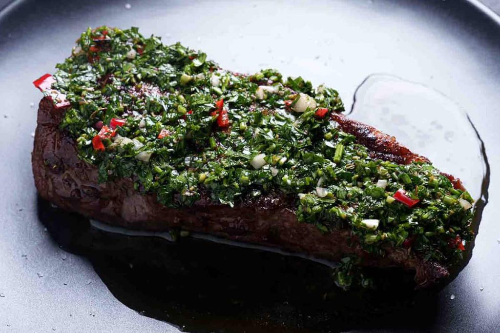 Chimichurri is a traditional herb and garlic sauce originating from Uruguay and Argentina. It’s typically made with parsley, garlic, vinegar, olive oil, and seasonings. It’s served as a condiment for grilled meats or used as a marinade in South American cooking.