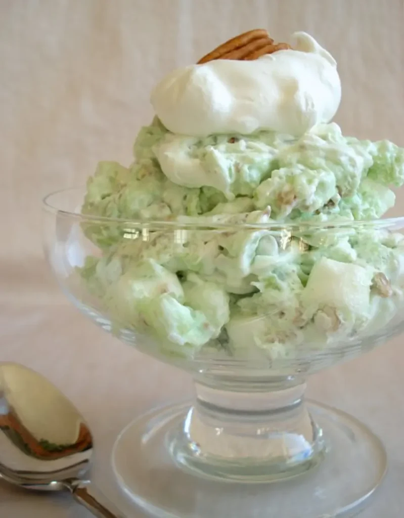 Fold the whipped topping gently instead of stirring vigorously. This helps preserve the light, fluffy texture that defines Watergate Salad.