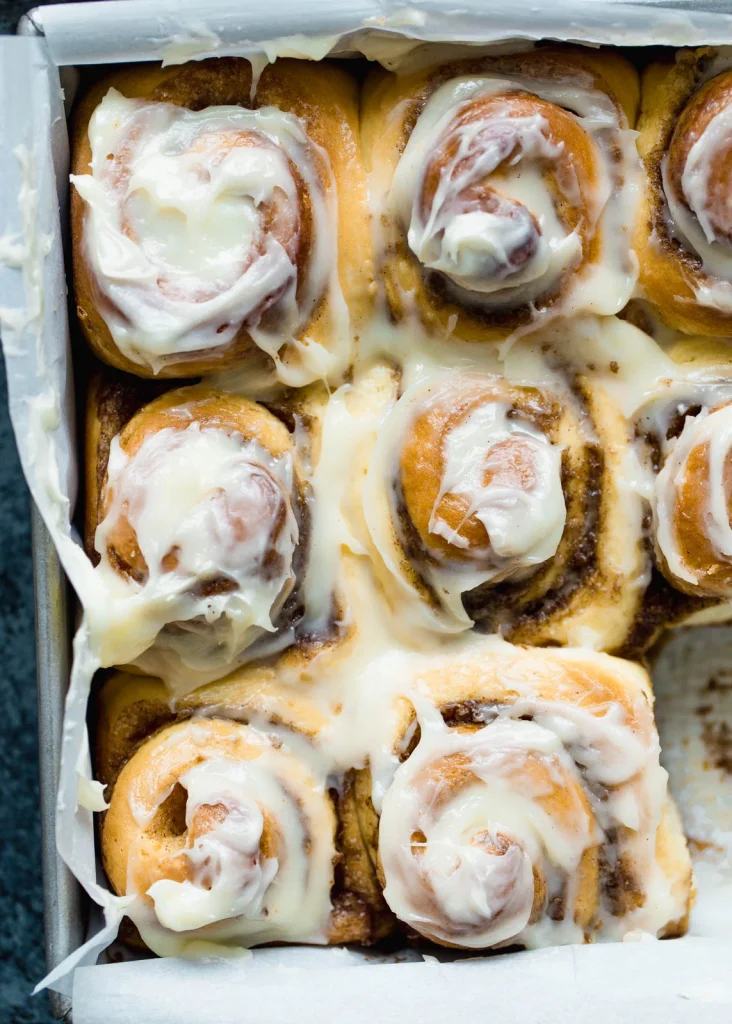 In the Freezer: Wrap baked and cooled rolls (without frosting) individually in plastic wrap, then place in a freezer bag. Freeze for up to 3 months. Thaw overnight in the fridge, warm in the oven at 300°F for 10–12 minutes, and frost before serving.