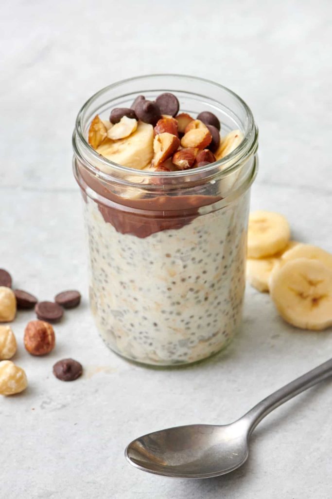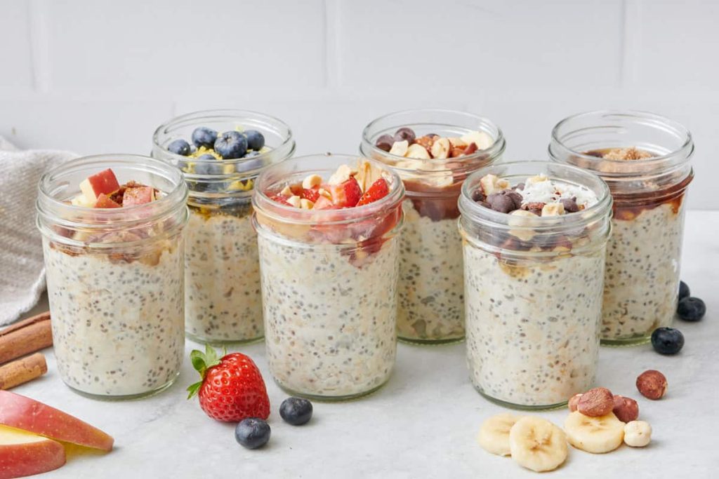 You make them the night before! All you need is a jar, some rolled oats, chia seeds, and your favorite flavor mix-ins. Below is the base recipe, followed by six irresistible flavor variations to try.
