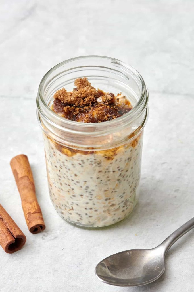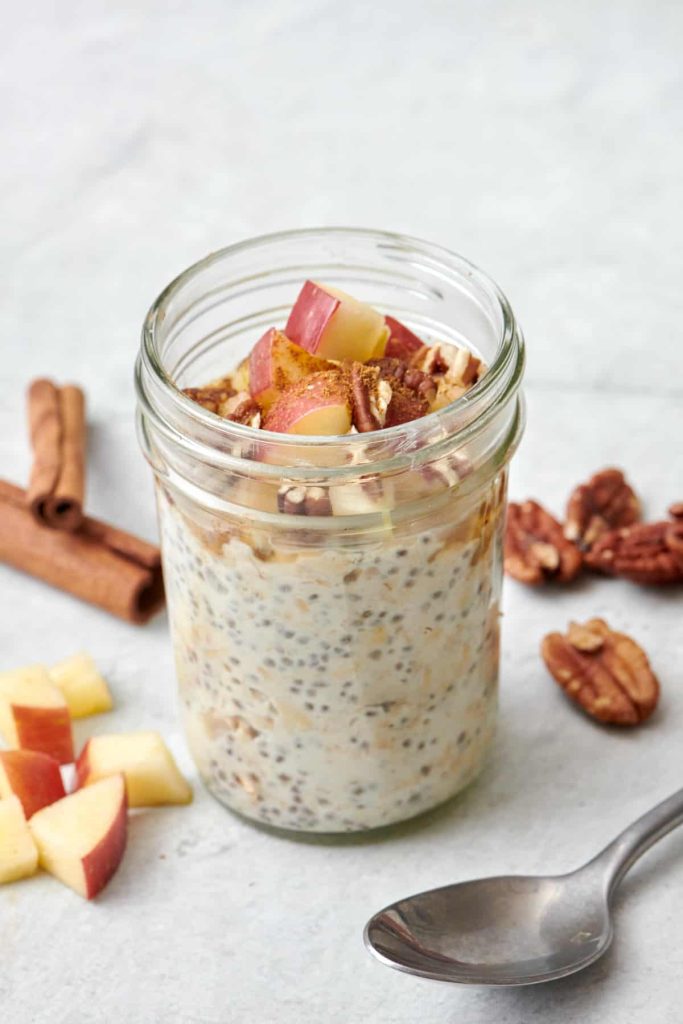 In the morning, top with extra pecans or a sprinkle of cinnamon for a cozy “apple pie in a jar” flavor.