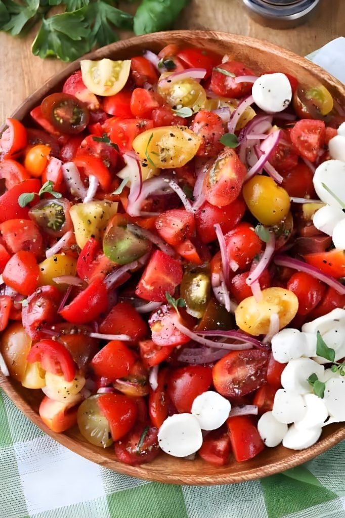 From its juicy tomatoes to its light, tangy dressing, every element works together to deliver a refreshing and satisfying experience. Once you try it, this salad is sure to become a regular addition to your recipe collection.