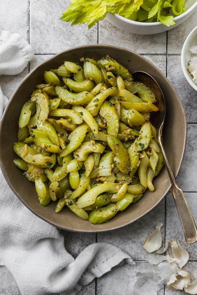 Sautéing is one of the fastest and most flavorful ways to cook celery. This method keeps the celery slightly crisp while infusing it with garlic, savory umami, and a bright splash of acidity. It’s perfect as a light side dish or as a base for grain bowls and stir-fries.