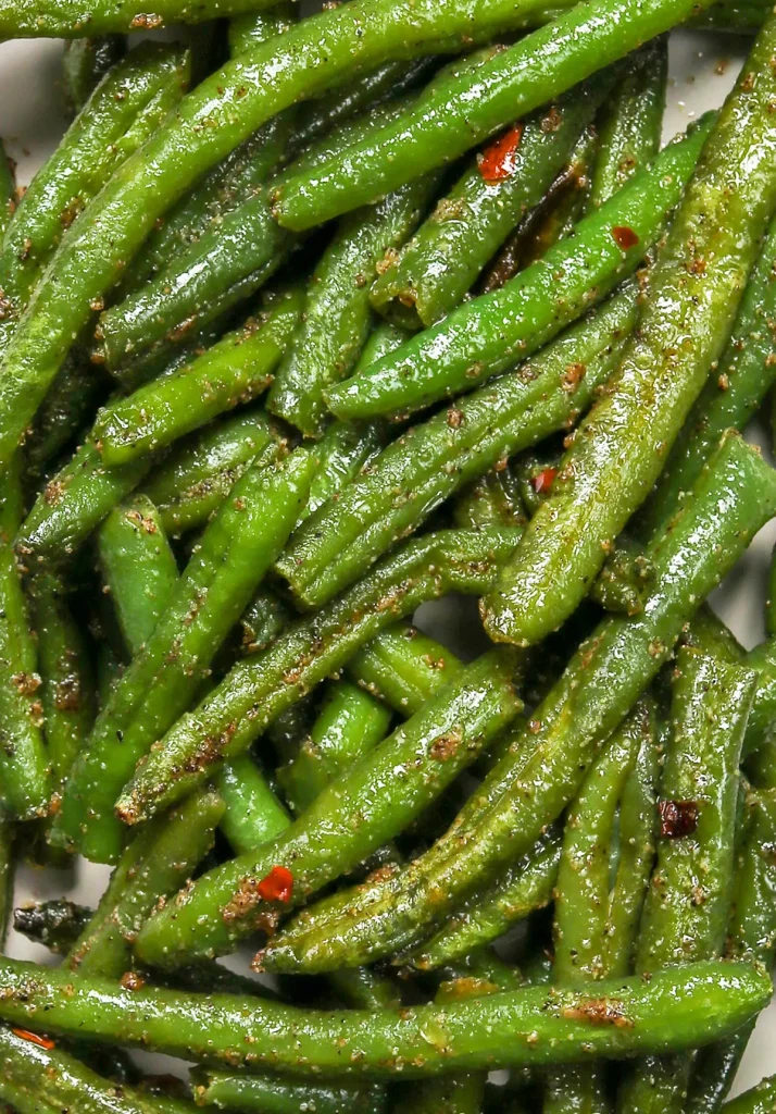 The green beans should be tender on the inside with slightly crisp, lightly browned edges. If you prefer them crispier, cook for an additional 2–3 minutes.