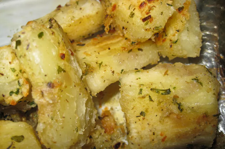 In a large bowl, combine olive oil, oregano or cilantro, parsley, onion powder, garlic powder, cumin, salt, and black pepper. Toss the yucca pieces until coated evenly.
