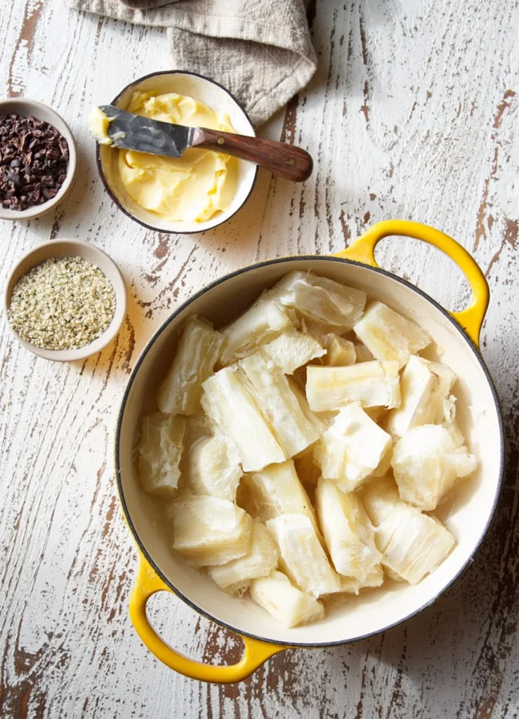 Cooking yucca root on the stove is one of the simplest and most traditional methods. This recipe brings out its naturally mild and starchy flavor, making it a perfect base for sweet or savory toppings.