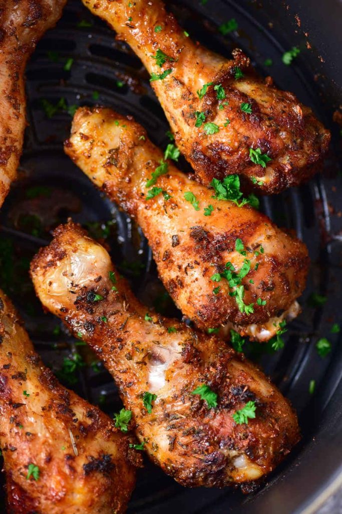 Place the chicken legs in a single layer in the air fryer basket. Cook for 25–30 minutes, flipping halfway through. The internal temperature should reach 165°F (74°C). I usually cook mine closer to 28 minutes for an extra golden finish.