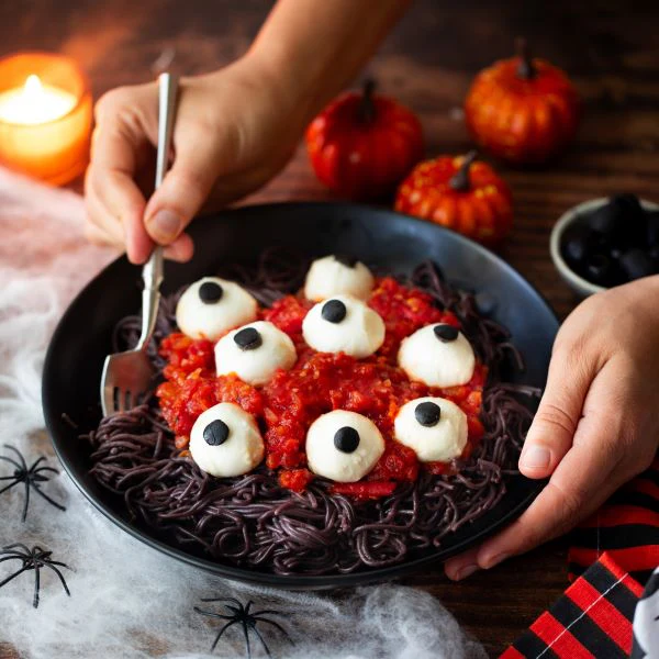 It’s an easy and striking recipe that both kids and adults will enjoy at any Halloween gathering. Serving four people, this pasta dish is sure to impress your guests while keeping the spooky vibes alive.