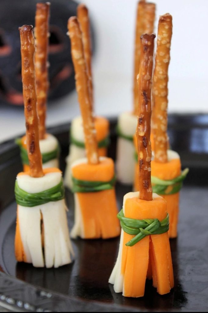 These broomsticks look magical on a Halloween snack table and pair well with other themed treats like pumpkin deviled eggs, mummy jalapeño poppers, or spooky spider cookies.